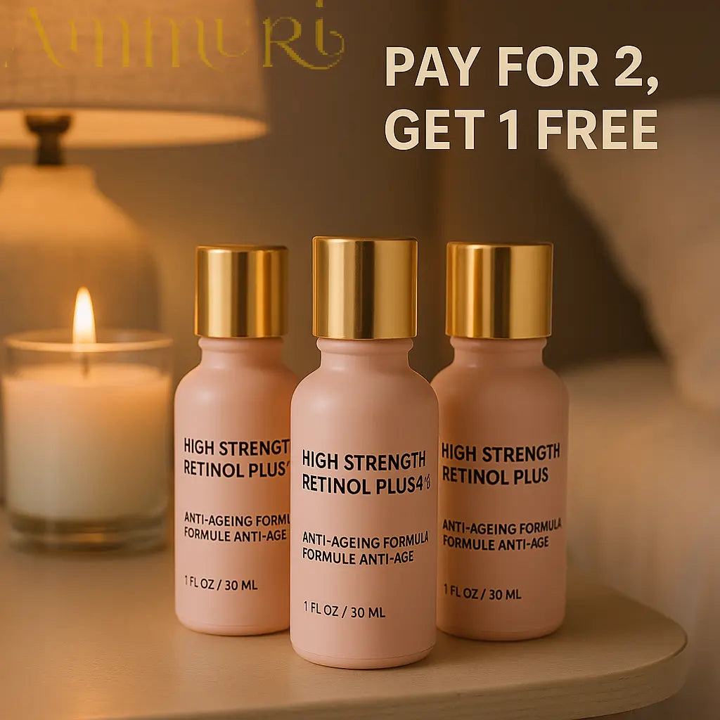 Ammuri High Strength Retinol Plus 4% Anti-Ageing Serum is expertly formulated to target the most visible signs of ageing, leaving your skin smoother, brighter, and more youthful-looking. This premium face serum delivers advanced skincare results, combining 4% Retinol with nourishing actives to restore radiance and firmness.